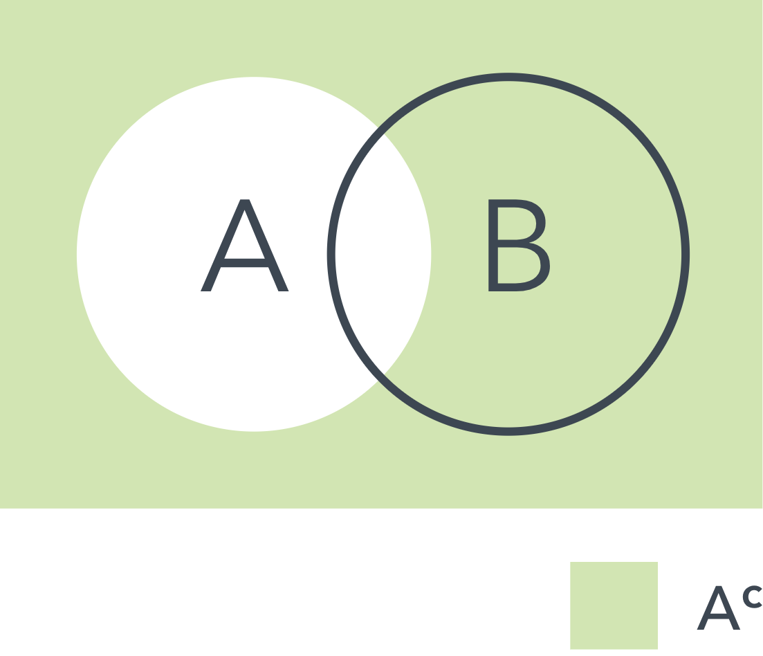 A^{\mathsf{c}} = \{x|x\notin A\}.