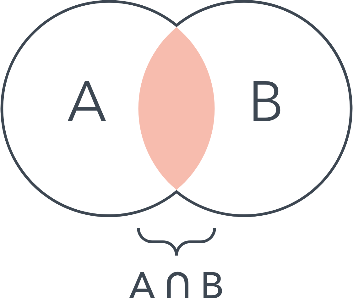 - Definimos \(D\) como a interseção de \(A\) e \(B\) (algumas vezes denominada produto de \(A\) e \(B\)) da seguinte maneira: \[