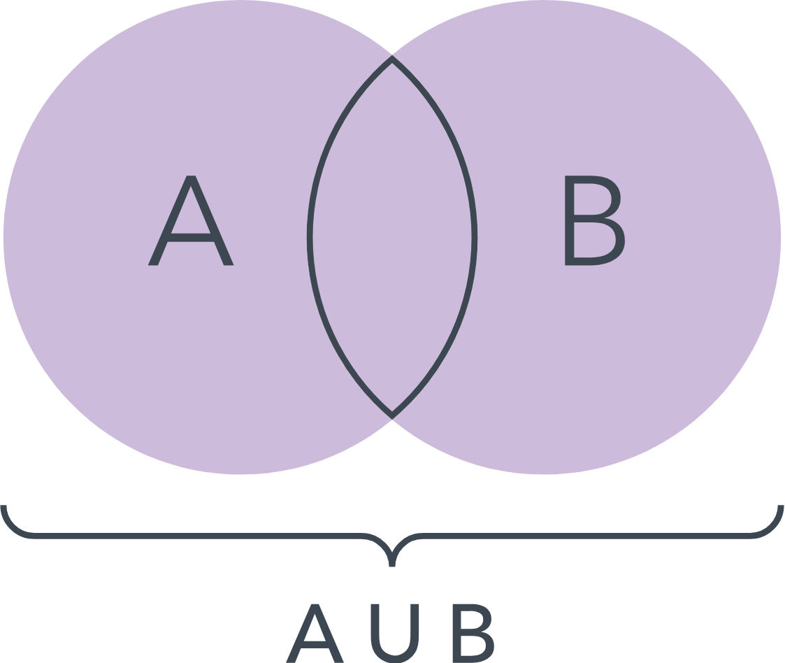 - Portanto, \(C\) será formado de todos os elementos que estejam em \(A\), ou em \(B\), ou em ambos.