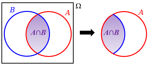 Consideramos diretamente a probabilidade de \(B\) dentro do novo e menor espaço amostral, que é o evento \(A\).