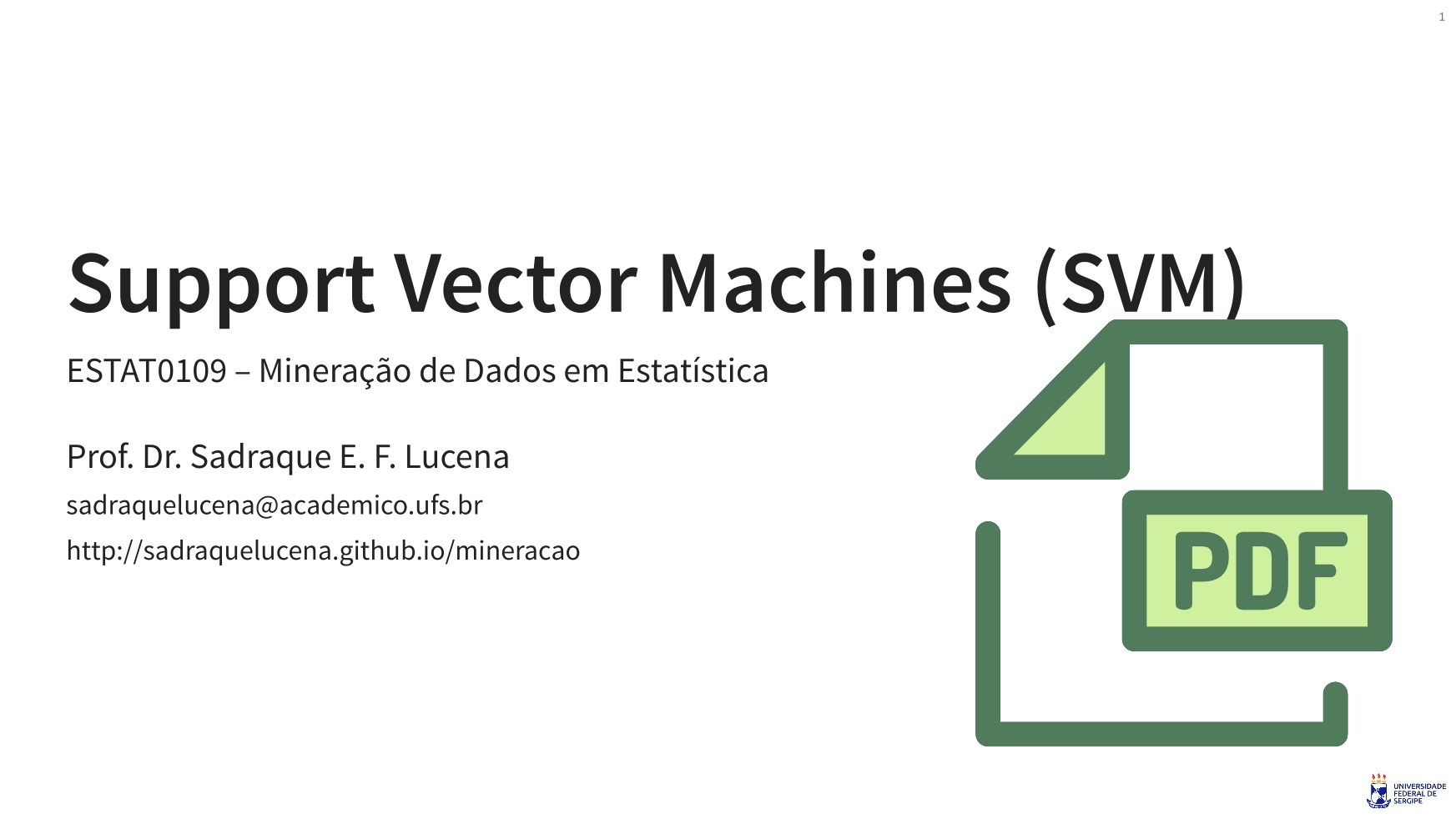 Nesta aula apresentamos as Máquinas de Vetores de Suporte (SVM), explorando sua intuição geométrica baseada na separação de dados por hiperplanos e na maximização da margem. Discutimos SVMs lineares e não lineares, o uso de margem suave e do truque do kernel, e aplicamos o método a um problema de Reconhecimento Óptico de Caracteres (OCR) em R, analisando o desempenho do modelo por meio de matriz de confusão e métricas de classificação.