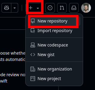 Após fazer login no GitHub, Clique em + no canto superior direito