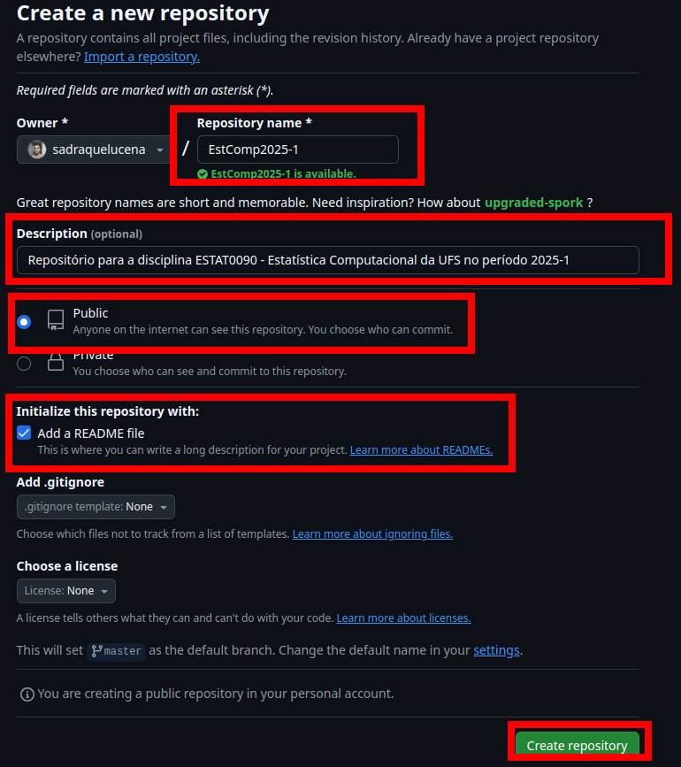 Em Initialize this repository with: marque a opção Add a README file