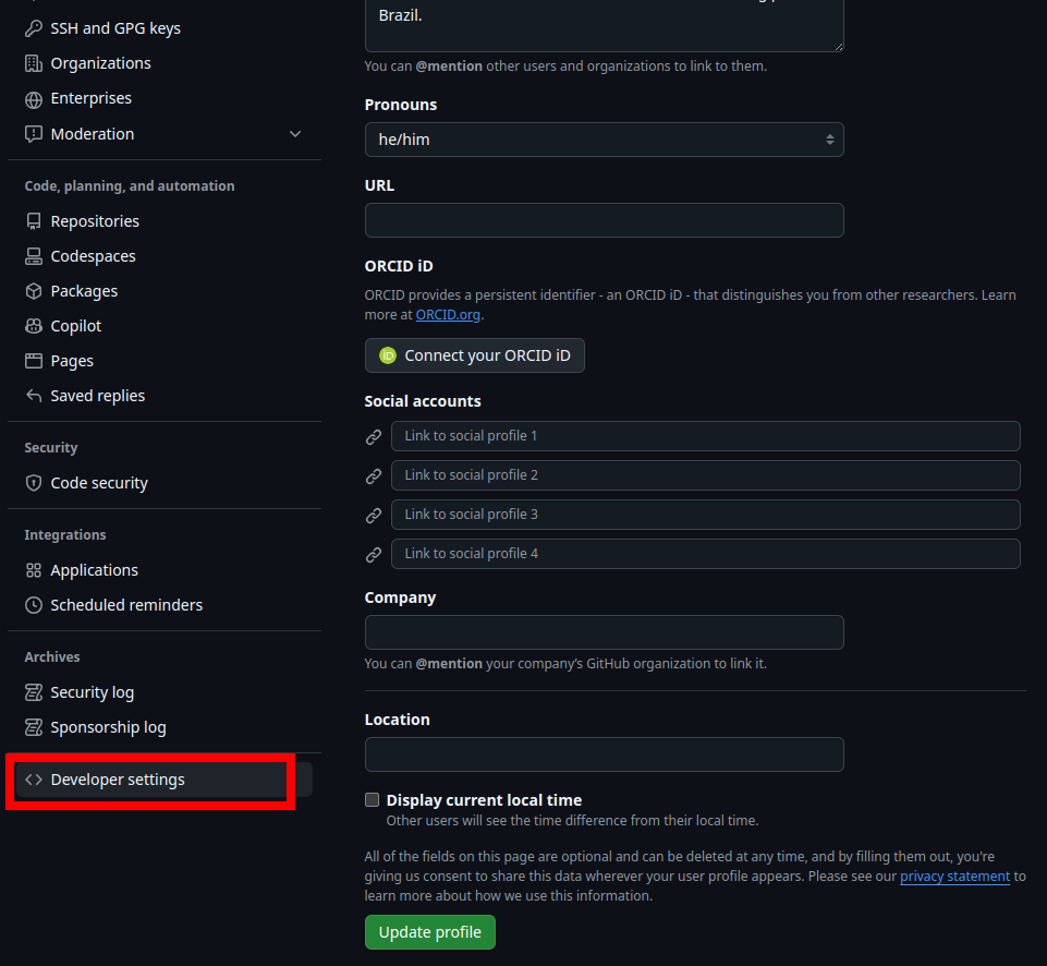 via Ainda em Linux, no campo Personal Access Token insira o token criado no GitHub