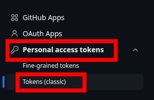 No canto superior esquerdo da tela clique em Personal access tokens
