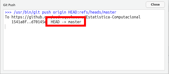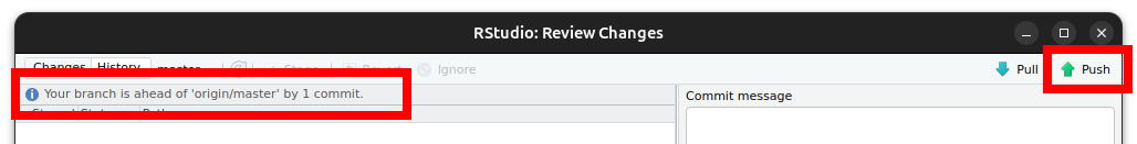 via Note que irá aparecer a mensagem Your branch is ahead of 'origin/master' by 1 commit (isto indica que você tem alterações ainda não enviadas ao GitHub)