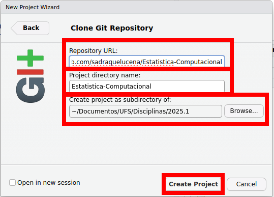 + Se você estiver clonando um repositório público, o RStudio irá criar uma cópia do projeto localmente, sem exigir login.